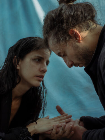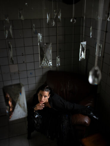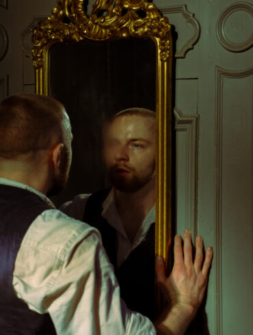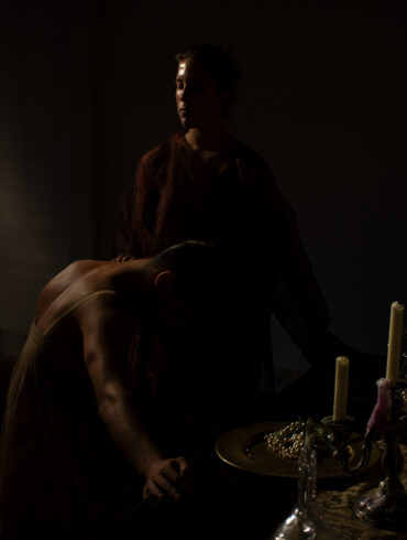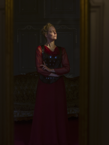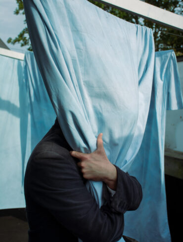 portrait of amanda with white fabric framing her face